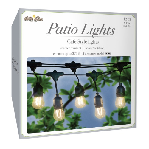 12 Lt S14 LED Patio Drop Lights, Warm White, Black Wire