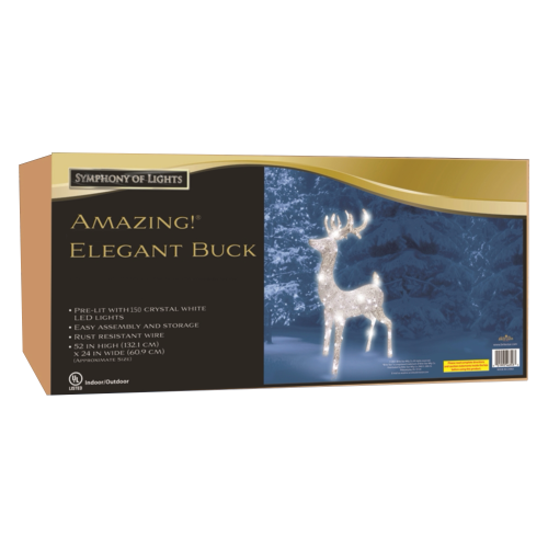 150 Lt ELEGANT DEER (APROX:48" ) - WHITE WOVEN + IRIDESCENT GILLTER, PURE WHITE LED 60" LEAD WIRE UL LISTED, INDOOR/OUTDOOR