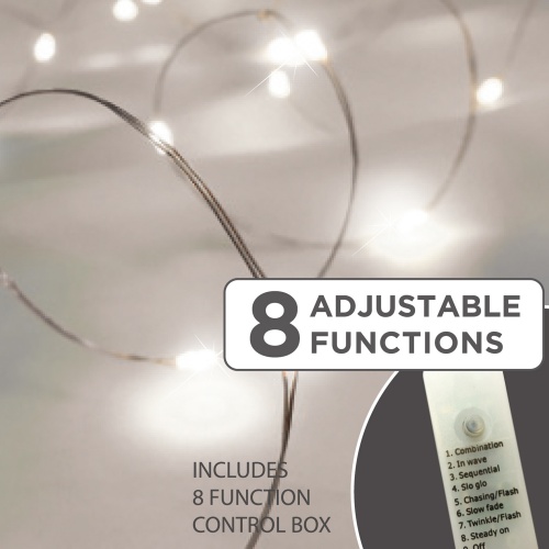 60 lt 8 Function Fairy Lights LED Light Set, Pure White, Silver Wire