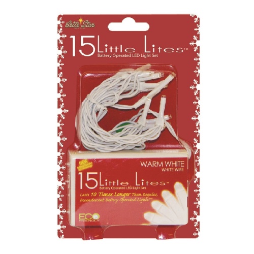 Battery Operated 15 lt 5mm Little Lites LED Light Set, Warm White, White Wire